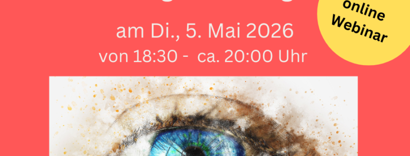 online Webinar! ….wie Augentraining Ihre Sehkraft unterstützen kann Am Dienstag, 5. Mai 2026 von 18:30 – 20:00 Uhr Unsere Augen leisten täglich Höchstarbeit – vor allem im digitalen Alltag. Stundenlange Bildschirmzeit, trockene Luft und wenig bewusste Pausen führen bei vielen Menschen zu müden, gereizten oder angespannten Augen. Doch was viele nicht wissen: 👉 Sie können … „Entspannte Augen trotz Bildschirmarbeit“ weiterlesen